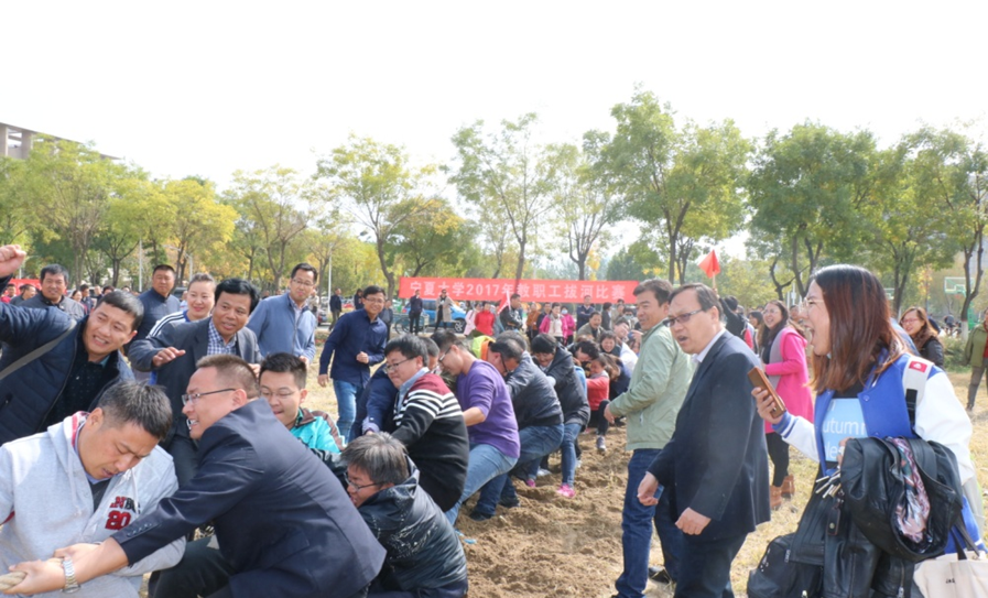 2017年9月27日、10月11日下午,宁夏大学2017年秋季教职工拔河比赛在贺兰山校区篮球场北侧草坪举行,比赛分两阶段进行。校党委副书记赵利宁出席开幕式并致辞指出,拔河比赛是我校开展阳光体育运动、提高教职工身心健康水平、增强教职工团结拼搏精神的一项重要活动,对进一步丰富教职工文体生活、推动教职工健身活动开展、形成浓郁的校园健康工作、积极工作氛围有积极促进作用,希望各单位、各位教职工,在愉快、健康活动的同时,以更加饱满的热情投入到工作中去,喜迎党的十九大胜利召开。
