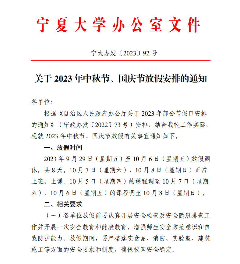 关于 2023 年中秋节、国庆节放假安排的通知