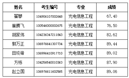澳门六合彩投注平台 2026年光电信息工程专业硕士学位研究生调剂复试成绩公示