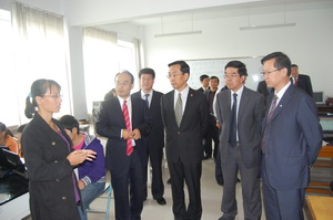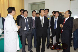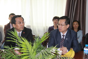 揭牌仪式之后,在校党委副书记赵利宁、组织部部长王亚勇等陪同下,上海交通大学校长张杰、副校长黄震一行到我校物理电气信息学院进行考察、座谈。