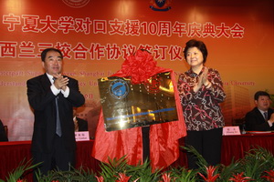 9月10日上午,在上海交通大学、宁夏大学对口支援10周年庆典大会之际,“宁夏智能沙漠研究中心”揭牌仪式在宁夏大学国际交流中心隆重举行。上海交通大学党委书记马德秀、宁夏大学党委书记齐岳共同为中心揭牌。表明了两校合作的平台得到了进一步的提升和推进,对宁夏大学的科研上水平有积极的促进作用。