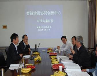 座谈会上,李新碗院长汇报了“智能沙漠协同创新中心”的申报方案,该方案是我院李新碗、王旭明、张轶炳、杨涛、杨国华、杨有贞、赵红生、郭中华、肖斌、李兴财、高华、李学丰十二位老师共同协作完成的,它紧紧结合国家高等教育系统又一项体现国家意志的重大战略举措—— “2011计划”,结合我院2011年8月与上海交通大学合作成立的“智能沙漠研究中心”,充分分析相关学科前沿的发展趋势和国家需要,体现出战略性和前瞻性,并根据目标、需求确定物理力学、信息科学、地理生态、草业科学等学科群,在组建协同创新中心时突破自身的局限性,与上海交通大学、兰州大学等强强联合,优势互补和分工协同。次方案得到了学校及有关部门领导的一致肯定。