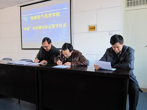 会议第一项进行了专业硕士导师聘任协议签字仪式,王旭明院长代表学院与李世芳、胡钢墩、汤秀芬、赵红生等15位院聘研究生导师签署了聘任协议。聘任协议明确规定了各位导师的职责,为更好的教育、指导研究生提供了重要依据。此次聘任具有副教授以上职称或博士学位的教师为专业硕士导师为学校首例,它打破了硕士导师资格认证框架,提倡胜任研究生指导工作的教师担任导师,采用聘任的方式建立硕士培养机制。