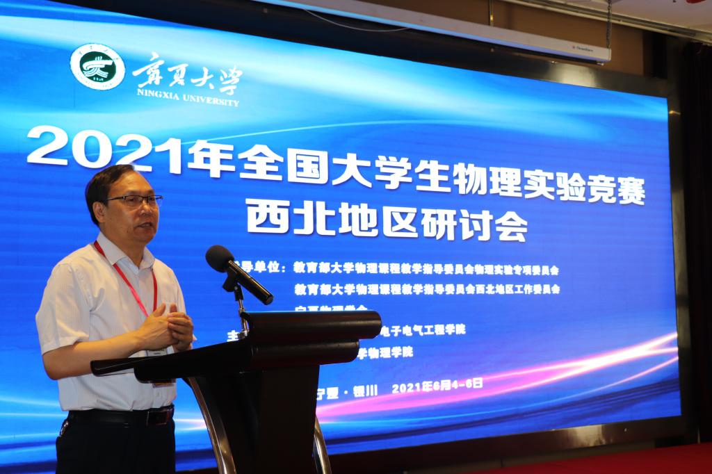 2021年6月4日至6日,由宁夏大学物理与电子电气工程学院主办,西安交通大学澳门六合彩投注平台 协办的2021年全国大学生物理实验竞赛西北地区研讨会在宁夏银川召开。来自西安交通大学、中国科学技术大学、陕西师范大学、东北大学、西北大学、兰州大学等41所高校的123位代表参加了本次研讨会。开幕式由宁夏大学物理与电子电气工程学院王旭明院长主持,宁夏大学周震副校长受邀参加并致辞。