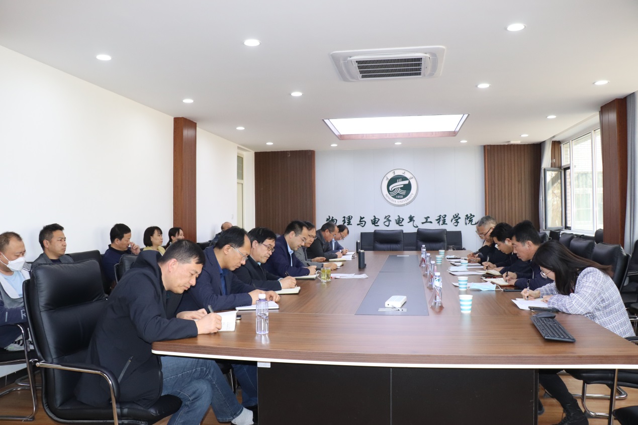 2022年3月30日下午,校党委常委、副校长李学斌一行到物理与电子电气工程学院调研指导工作。学院领导班子成员、各系(中心)主任、三办主任、院分工会主席参加了调研座谈。