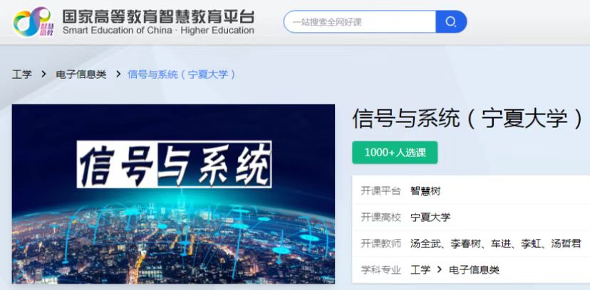 我院国家级一流本科课程“信号与系统”于近日入选国家高等教育智慧教育平台,成为首批上线的2万门课程之一。