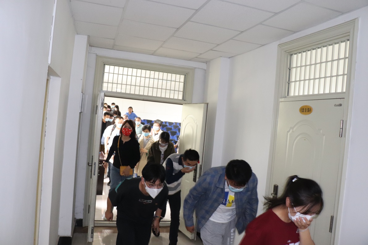 马媛媛教官以校园消防安全教育为主题,通过PPT生动详细地讲解了消防安全知识及紧急疏散逃生注意事项,并利用大量实例真实讲述在地震、火灾、水灾等灾难中如何求生。培训结束后,随着警报声响起,参训人员迅速有序疏散并在短时间内撤离到指定地点。