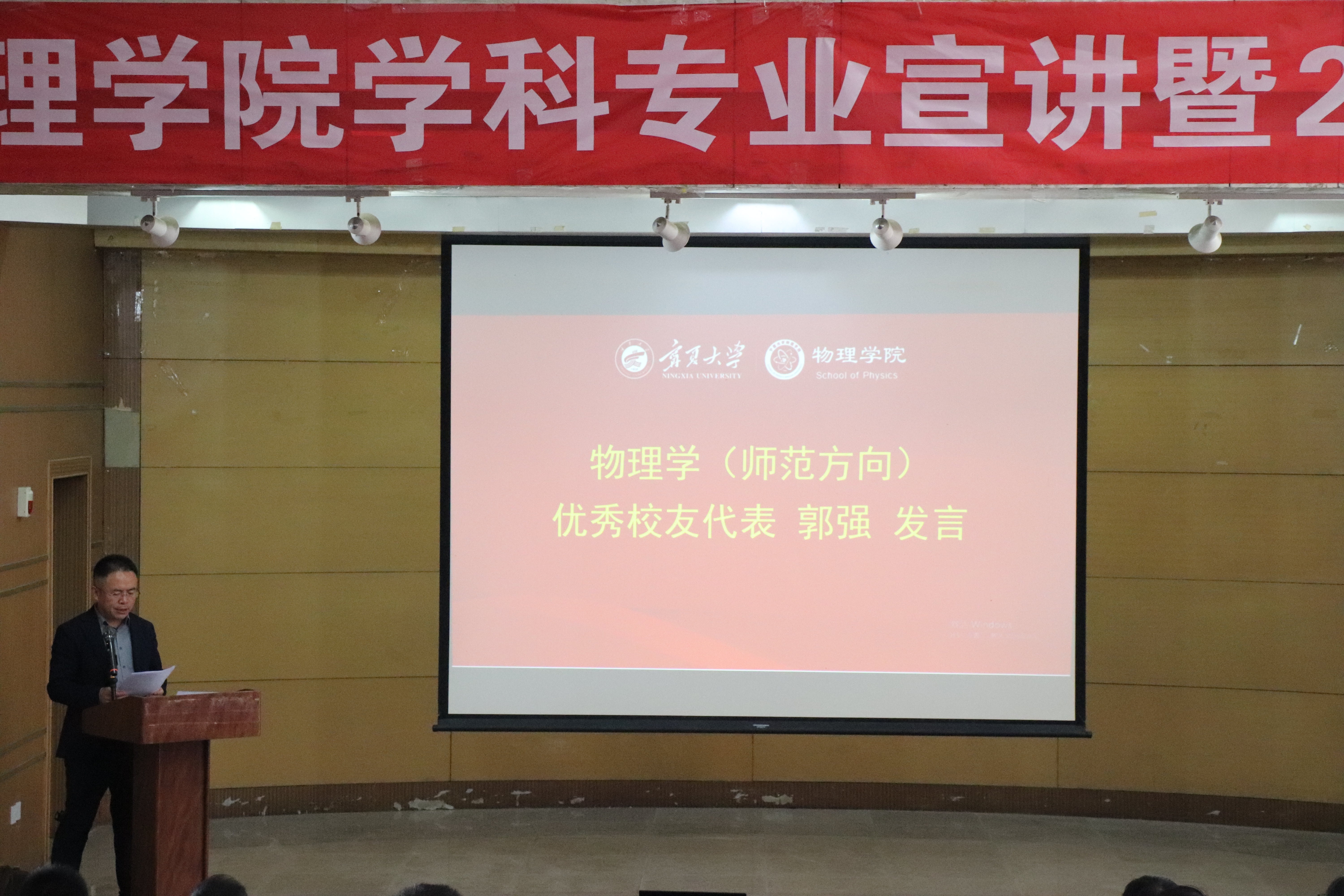 物理学(师范方向)优秀校友代表、宁夏银川一中党委委员、副校长郭强,物理学(基础拔尖)优秀校友代表、中国科学院理论物理研究所助理研究员谢琼、物理学(材料物理)优秀校友代表、广东一纳科技有限公司总经理王建兴受邀发言。他们通过分享自身的成长经历,展现他们在各行各业取得的业绩,激励和引导每一位澳门六合彩投注平台 学子传承物理人的精神,在奋斗中练就过硬本领、勇于创新创造、锤炼高尚品格、追逐青春理想,以青春奋斗之我,成就精彩人生。