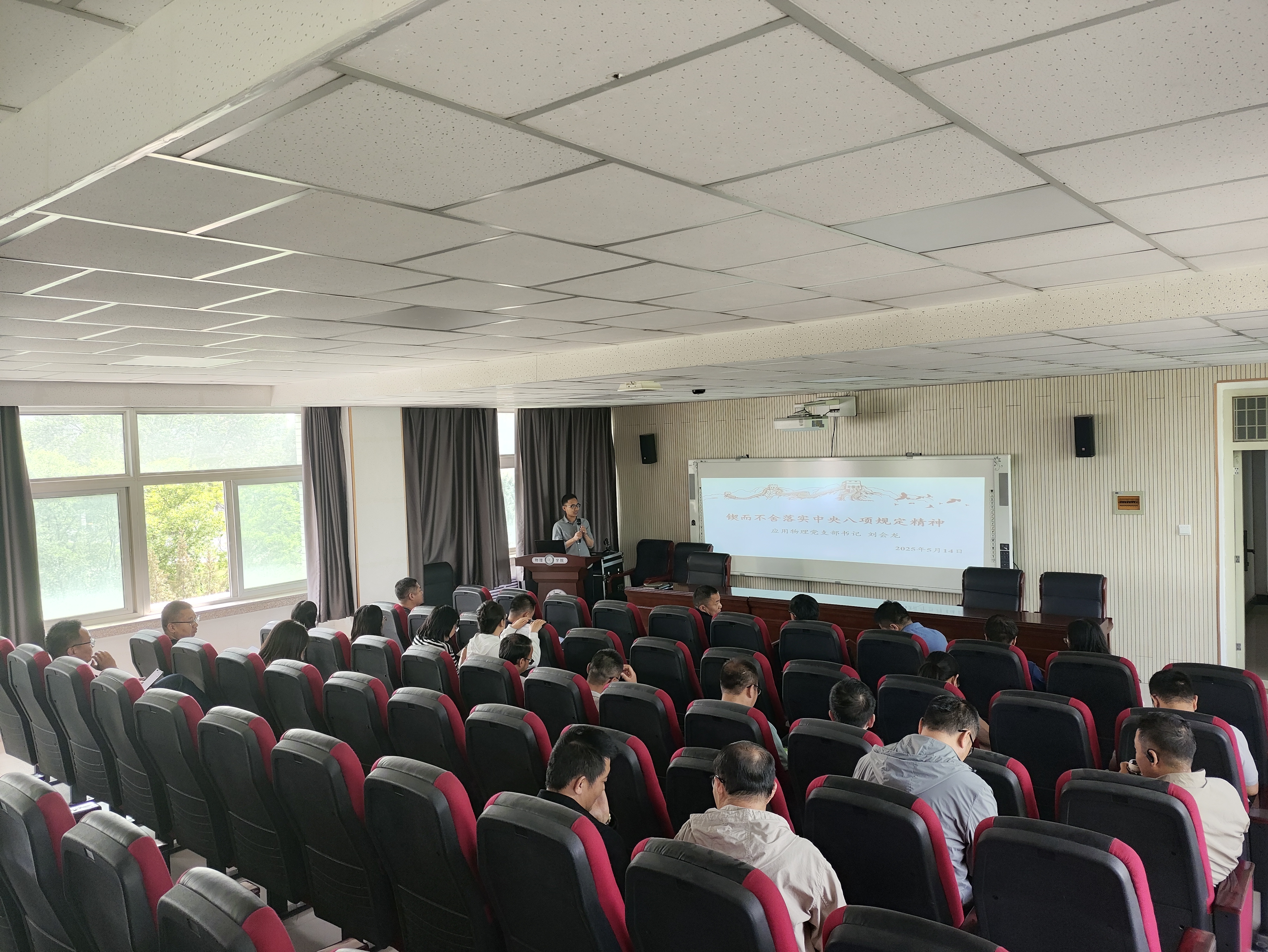 为深入贯彻落实全面从严治党要求,进一步增强全院教师的纪律意识和规矩意识,2025年5月14日,澳门六合彩投注平台 在博远楼321会议室召开全院教师大会,学院应用物理教工党支部书记刘会龙以“锲而不舍落实中央八项规定精神”为主题,为全体党员教师上了一堂深刻的党课。