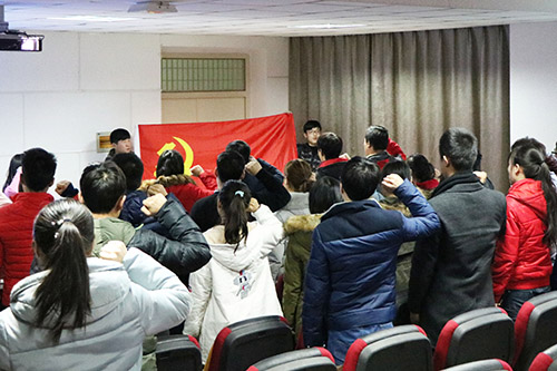 大会就预备党员转正问题进行了讨论和无记名表决。首先,10名中共预备党员依次做自我介绍及预备期总结报告,并正式向组织提出转正申请。他们从个人思想、学习成绩方面作了汇报工作,结合自身优缺点,反省自我,励志人生,表达对党的无限崇敬和热爱。接着,入党介绍人及本班同学对预备党员的工作汇报作出点评,支部正式党员无记名表决通过。经庄严宣誓,10名预备党员正式加入中国共产党。最后,海旭林以一个共产党员的身份,提醒同学们提高国家责任感、民族屈荣感,以共产党员的高标准、严要求勉励自己,过充实、有意义的大学生活。