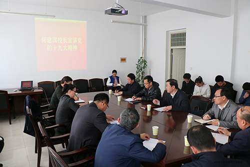 【宁夏大学物理与电子电气工程学院《声光》记者站张蓉/文】11月29日,何建国校长为我院领导班子及各党支部书记宣讲党的十九大精神。