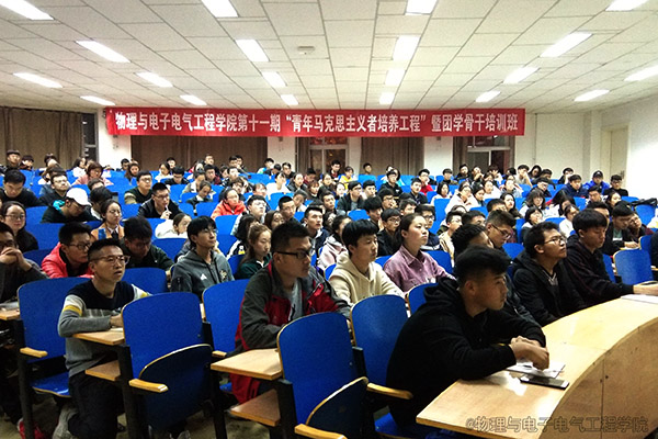 11月19日晚上,物电学院于怀远一教231教室举行物理与电子电气工程学院分党校第三十三期入党积极分子暨第八期发展对象培训班、第十一期“青年马克思主义者培养工程”暨团学骨干培训班培训活动,本次活动培训班全体学员观看纪录片《榜样3》,活动由辅导员王巳卉老师主持。