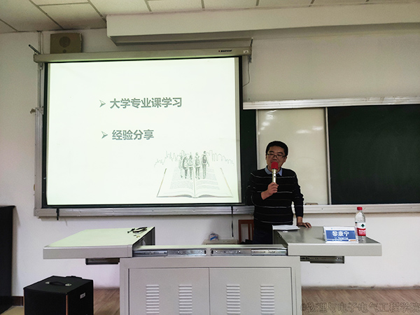 课堂上,黎康宁老师主要从大学专业课学习和经验分享两方面展开讲解。首先,他分析了大学教育和中学教育的区别,并从培养目标、管理模式和教学方法三个方面做了对比说明。接着,黎老师就有关大学物理的学习方法和考研专业课的复习技巧给同学们提出了几点建议,希望同学们能够掌握学习技巧,提高学习效率。随后,黎老师将自身的学习经历跟同学们进行了分享,同学们也兴致满满,收获颇丰。结束前,黎老师嘱咐同学们要明确学习目标,积极进取,争取获得更大的进步!
