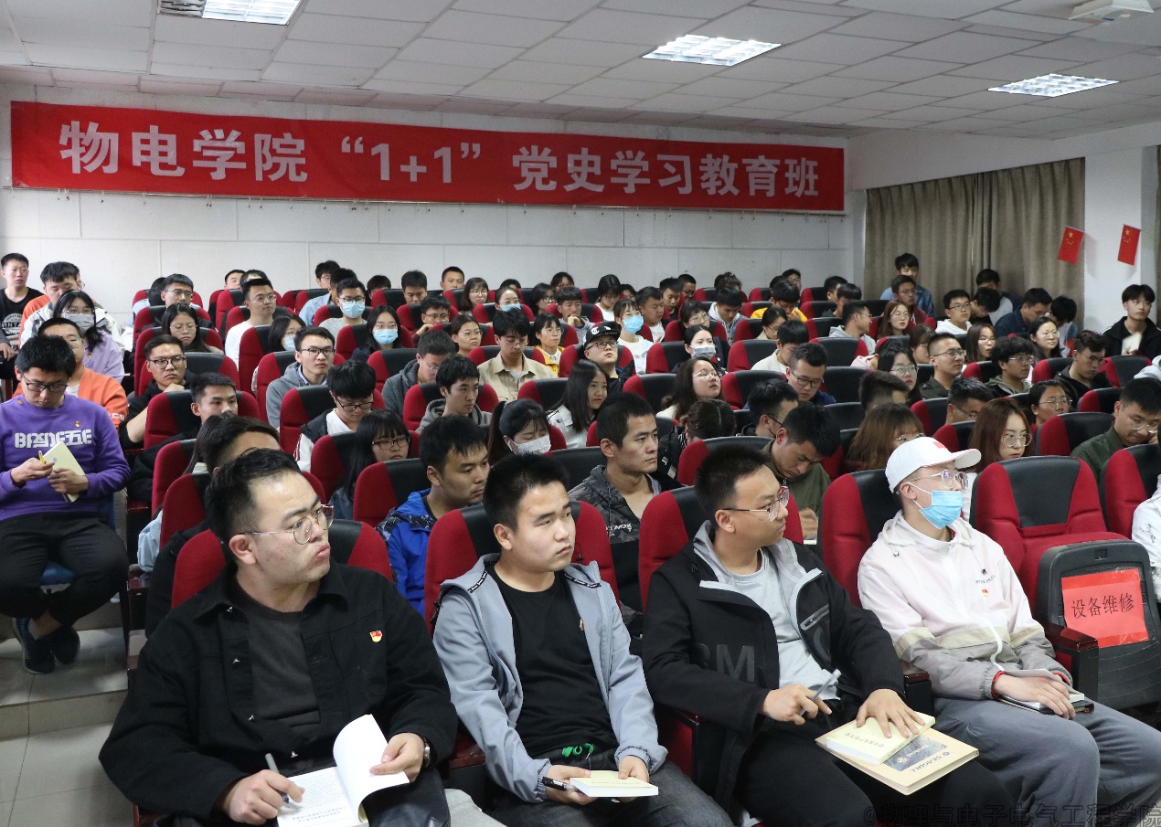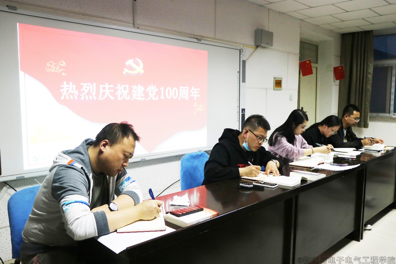 4月7日,物理与电子电气工程学院在博远楼321室举行党员 “1+1”(集中学习与集体活动相结合)党史学习教育,5个学生党支部书记及全体学生党员参加了学习。